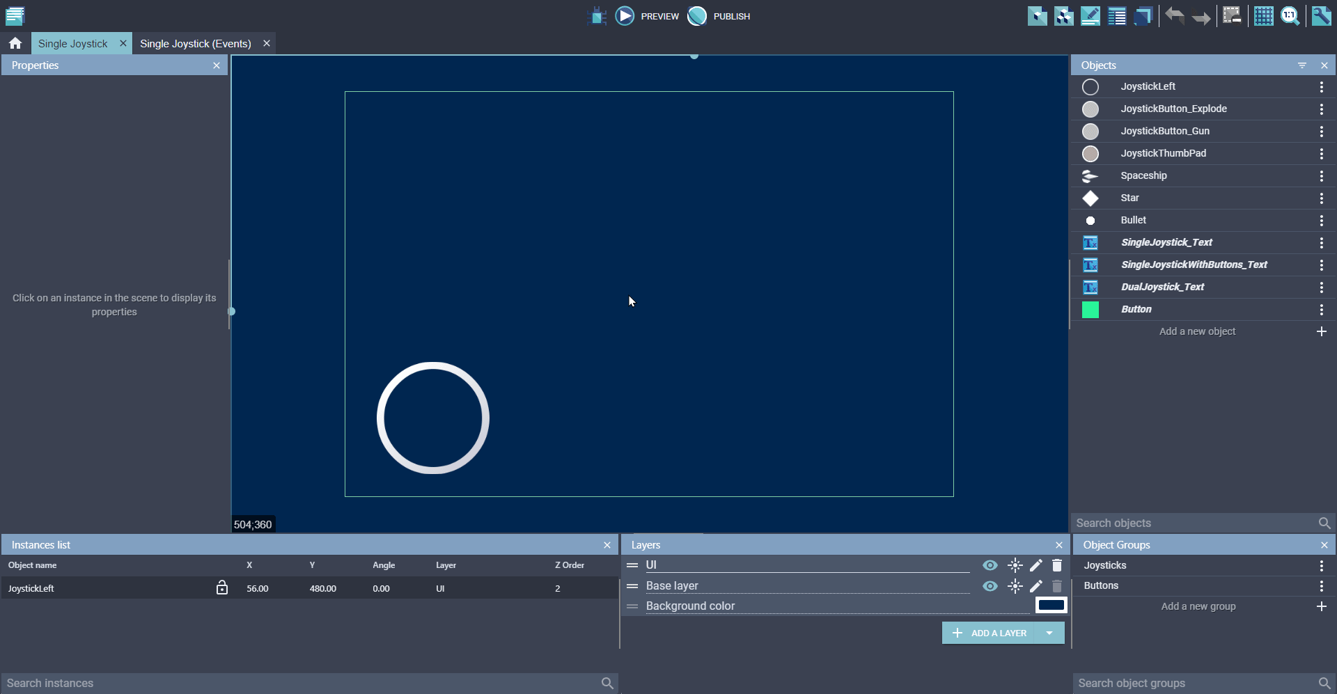 4) Add "Multitouch Joystick" behavior to the Joystick object.
